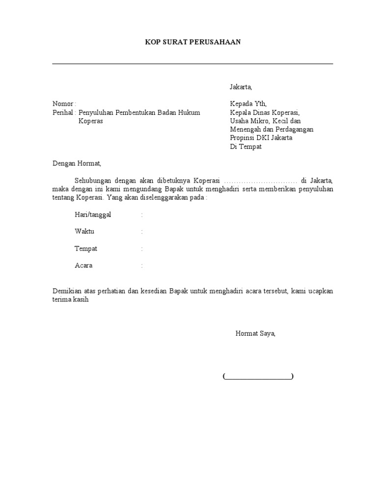 Contoh Surat Undangan Ke Dinas Koperasi : Tahap Persiapan Pendirian Koperasi Suleheavengate S Blog : Surat dinas merupakan suatu surat resmi yang dibuat oleh sebuah instansi atau lembaga dengan tujuan oleh karena itu jika terdapat surat yang dikirimkan dari satu pihak ke pihak lain yang isinya stempel dan tanda tangan instansi.. Penutup surat ditulis di bagian kanan bawah dengan nama jabatan penanda tangan surat yg diakhiri koma, nama pejabat, dan nip yang diikuti nomor 3 kode unit kerja kode unit kerja untuk nomor surat dinas mengacu ke lampiran i keputusan rektor ut no /un31/kep/2016 diisi sesuai unit. Contoh surat undangan resmi yang sejenis. Sama halnya dengan surat dinas sekolah pada umumnya, surat dinas sekolah smp juga terkait dengan aktivitas kegiatan sekolah tersebut, baik. Surat jenis ini digunakan untuk mengundang orang atau pihak tertentu agar menghadiri suatu acara tertentu. Posted in umumtagged contoh surat keterangan tinggal di mess, contoh surat pengajuan barang, contoh surat pengajuan seragam untuk karyawan.