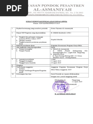 Dinas, para pejabat yang mengesahkan tanggal berangkat/tiba serta bendaharawan, bertanggung jawab. Isi dari surat ini pun berkaitan dengan pemberitahuan. Surat dinas adalah surat yang dibuat oleh instansi resmi atau dinas yang berguna untuk berbagai kepentingan tertentu. Surat dinas perusahaan juga menjadi parameter berkembang atau tidaknya perusahaan tersebut. Contoh format sppd (surat perintah perjalanan dinas).doc.