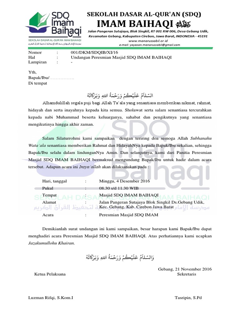 Home » surat undangan » contoh surat undangan pengajian format resmi. Sehubungan dengan telah selesainya renovasi pembangunan gedung serbaguna rw 04 kelurahan selalu rukun kota bandung, maka kami selaku pengurus daerah rw 04 memohon kehadiran bapak/ ibu, saudara. Adapun contoh dari surat resmi adalah surat lamaran kerja, surat pengunduran diri, surat penawaran dan yang lainnya. Contoh surat edaran dari rektor. Sabtu, 23 januari 2018 waktu :