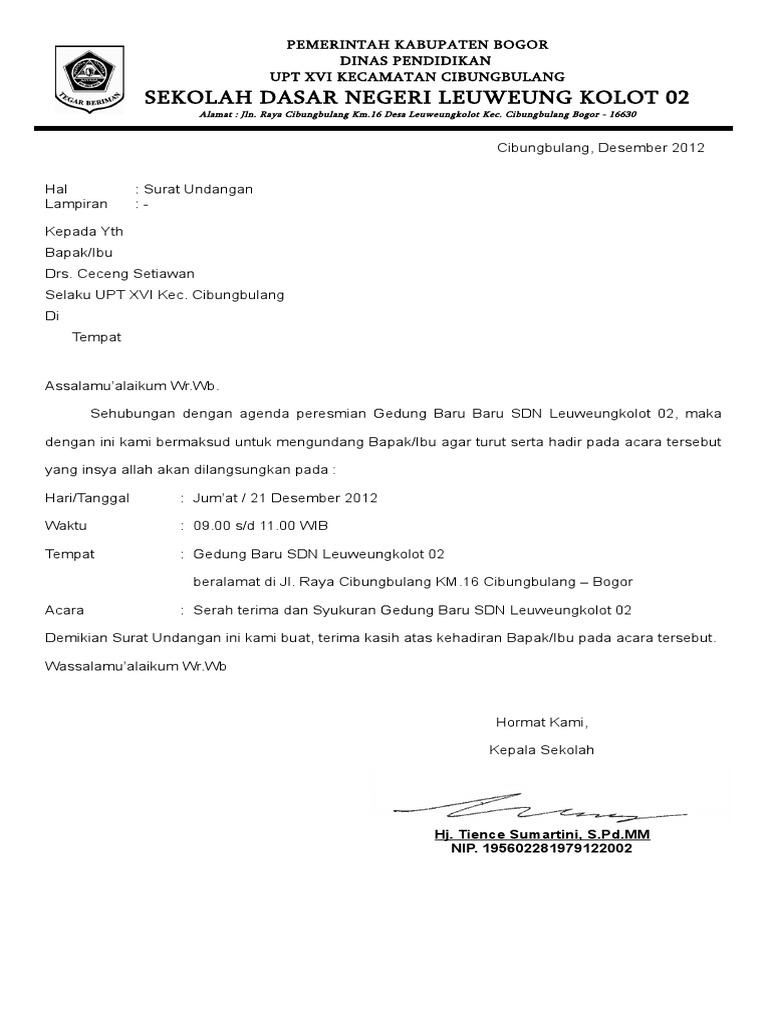 Mengingat bahwa teknologi komunikasi saat ini. Stempel dan tanda tangan stempel dan tanda tangan, menjadi bukti bahwa surat undangan tersebut resmi yang dikirim oleh pihak yang. Sehubungan dengan telah selesainya renovasi pembangunan gedung serbaguna rw 04 kelurahan selalu rukun kota bandung, maka kami selaku pengurus daerah rw 04 memohon kehadiran bapak/ ibu, saudara. Berikut kami berikan contoh surat undangan resmi yang bisa dijadikan referensi dalam pembuatannya. Setelah mengenal beberapa contoh surat undangan resmi, mulai dari undangan perusahaan, pembagian raport sampai peresmian tempat. Kumpulan contoh surat undangan resmi tidak resmi untuk acara, event dan 13. Surat undangan resmi untuk rapat, pertemuan atau sosialisasi resmi yang bisa anda gunakan sebagai contoh referensi untuk keperluan surat anda. Contoh surat edaran dari rektor. Mungkin kebanyakan dari kita telah mengenal dengan jenis surat yang satu ini. Mohon maaf apabila banyak kesalahan dalam. Kops surat, bagian ini merupakan bagian terpenting dalam surat resmi, karena pada bagian inilah menunjukan instansi surat undangan berasal. Setelah dibahas mengenai beberapa contoh surat undangan resmi, dimulai dari surat undangan perusahaan, surat undangan pembagian raport sampai dengan surat undangan peresmian tempat, kini akan dilanjutkan dengan pembahasan untuk mengenal beberapa contoh surat undangan tidak. 08 desember 2016 jam :