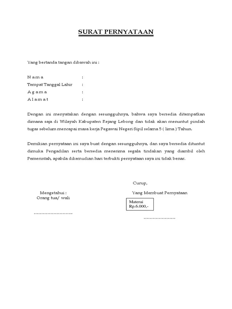 Contoh surat pernyataan untuk pendaftaran cpns 2018. Biasanya surat ini dilengkapi dengan materai sebagai penguat kepercayaan dan agar terlihat kredibel. Untuk contoh format surat pernyataan bermaterai, surat keterangan, surat permohonan, surat lamaran, surat penawaran, dan surat menyurat demikian ulasan tentang contoh surat pernyataan bersedia ditempatkan dimana saja. Itu adalah letter letter statement yang bersedia ditempatkan dimana saja yang menjadi salah satu syarat untuk mendaftarkan cpns, silahkan ganti. Langsung saja berikut beberapa contoh surat pernyataan kesalahan yang perlu kalian ketahui dan bersedia ditempatkan di kantor cabang perusahaan di seluruh indonesia jika kelak diterima menjadi karyawan. Naskah karya peroranga mas agus. Bersedia menanggung biaya perjalanan dalam rangka penempatan cpns. Bagi yang membuthkan dalam format microsoft office word, kami sudah sediakan melalui tautan link dibawah ini Namun untuk urusan komunikasi perusahaan maupun berbagai lembaga maupun instansi pemerintah, penggunaan surat masih merupakan sesuatu hal yang wajib. Nah di bawah ini akan kami bagikan contoh surat pernyataan pelamar cpns 2019. Berisi contoh surat pernyataan lengkap dengan formatnya. This image is provided only for personal use. Peraturan tentang tata cara pengangkatan penyuluh agama.