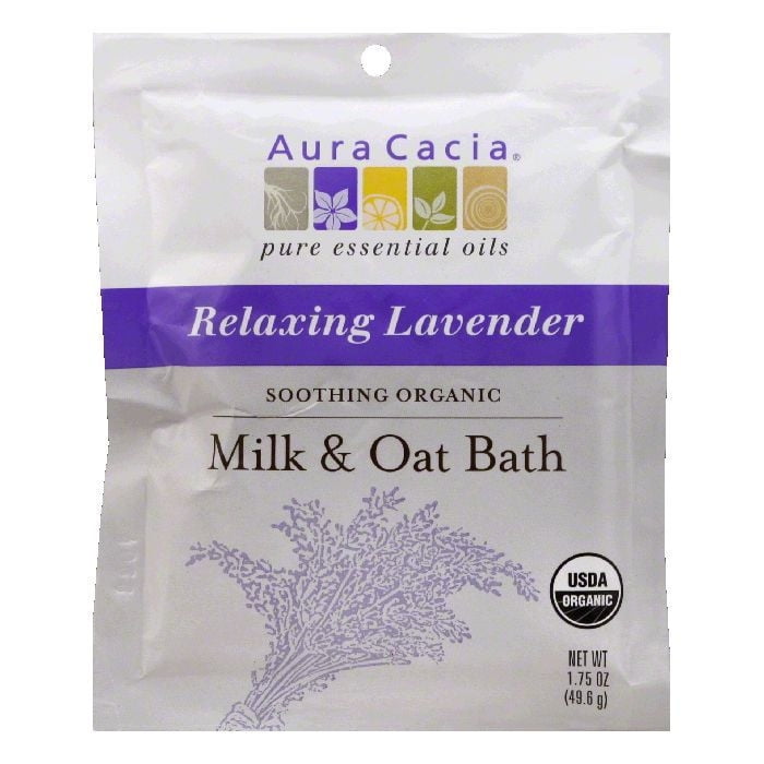 Aura cacia organic milk & oat bath provides instant skin relief along with the soothing and relaxing aromatherapy benefits of 100% pure lavender essential oil.